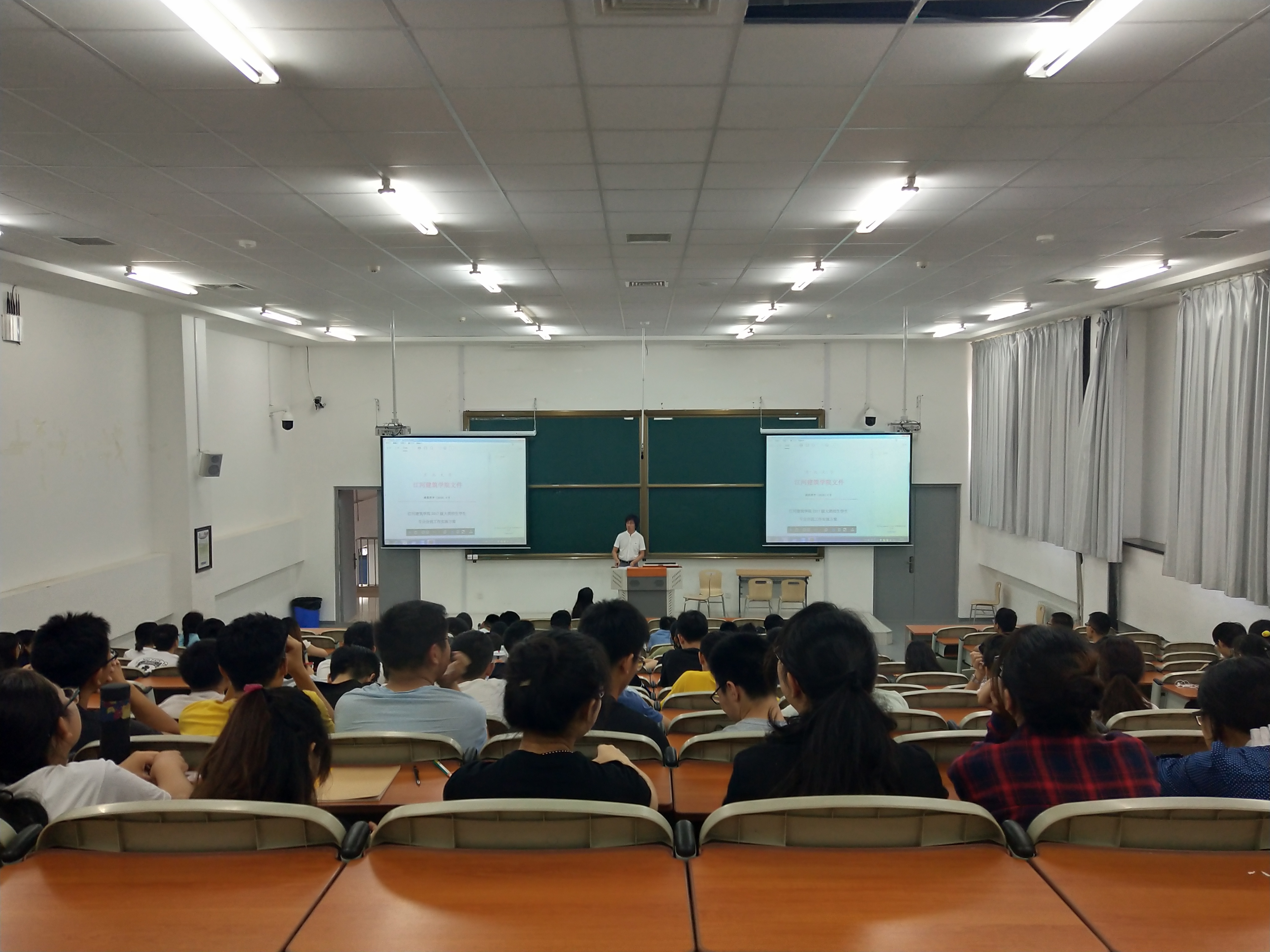 7月5日,学院在建筑馆A302组织召开了2017级本科生转专业、分流、推免工作布置会,会议由曲艺老师主持,综合办公室王莹,学生办于欣彤和学院2017级全体本科生参加会议。