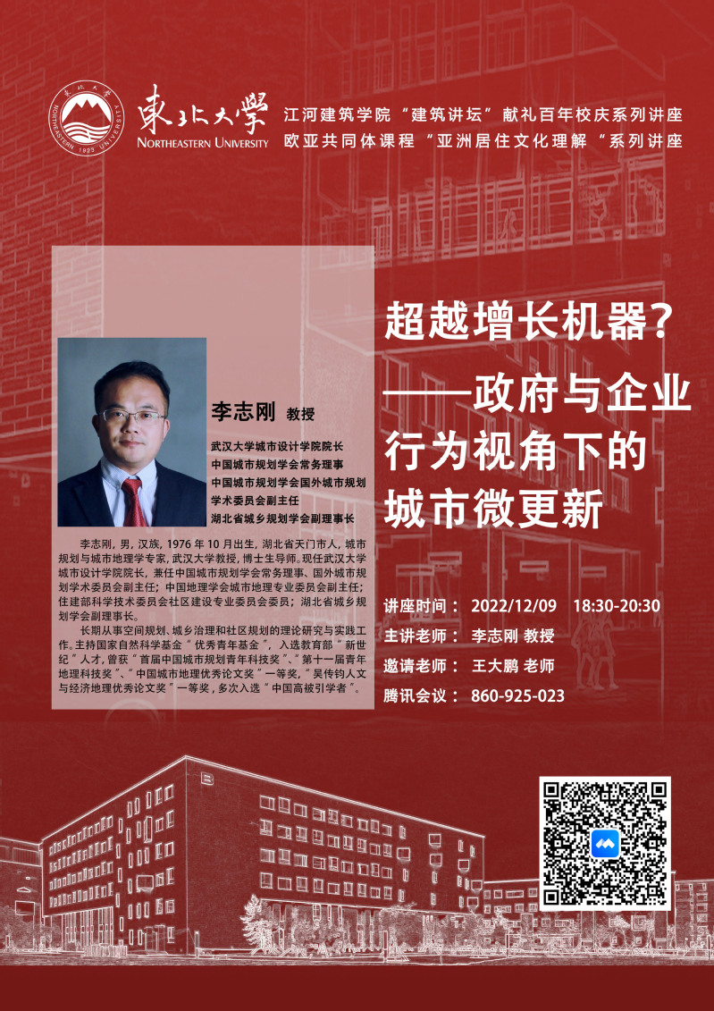 12月9日,应城乡规划系王大鹏老师邀请,武汉大学城市设计学院院长李志刚教授做客米兰网_米兰(中国)“建筑讲坛”(暨献礼百年校庆系列讲座),做题为《超越增长机器?——政府与企业行为视角下的城市微更新》的学术讲座,学院师生100余人参加线上交流。