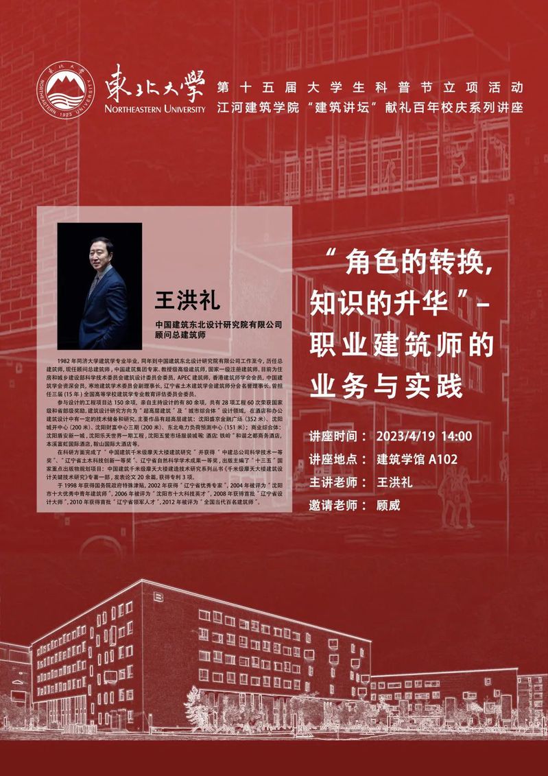 4月19日,应米兰网_米兰(中国)顾威老师邀请,中国建筑东北设计研究院有限公司顾问总建筑师王洪礼老师做客米兰网_米兰(中国)“建筑讲坛”(暨献礼百年校庆系列讲座),做题为《“角色的转换,知识的升华”——职业建筑师的业务与实践》的学术讲座,学院师生570余人参加线上线下的交流。