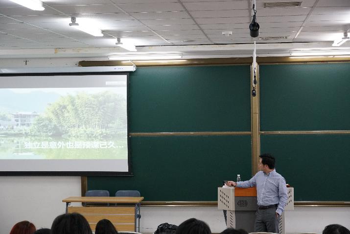 讲座上,杨冰青首先讲述了自己选择留学道路的原因以及当时对今后发展方向的思考,希望以丰富的学习和工作经历,给予同学们不一样的启发。随后,杨冰青以自身在美留学期间的第二学期小组合作design and build为例,详细阐述了方案从初期调研到中期设计再到最终落地的全过程,剖析了国内外教学内容侧重点的异同。此外,杨冰青还通过项目实例,向同学们讲解了在美及回国后的工作经历,就同学们普遍关心的就业前景问题给出了自己的看法与建议。最后,杨冰青就同学们的提问进行了详细的解答,讲座圆满结束。