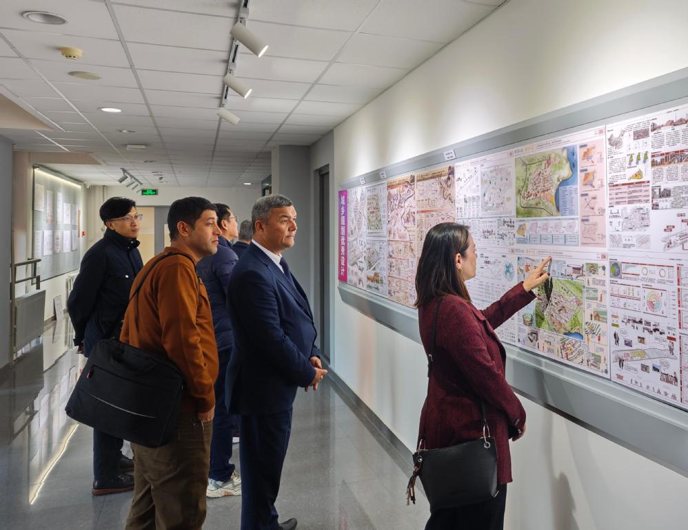 Chidem Janbay Turkyılmaz校长一行参观了学院梁思成纪念馆、学生作业展、与香港中文大学共建国际暑期课课程成果展、学生美术作品展等,同时对学院专业教室、美术教室等基础教学设施进行了实地考察,并与建筑学院学子们进行亲切交流。