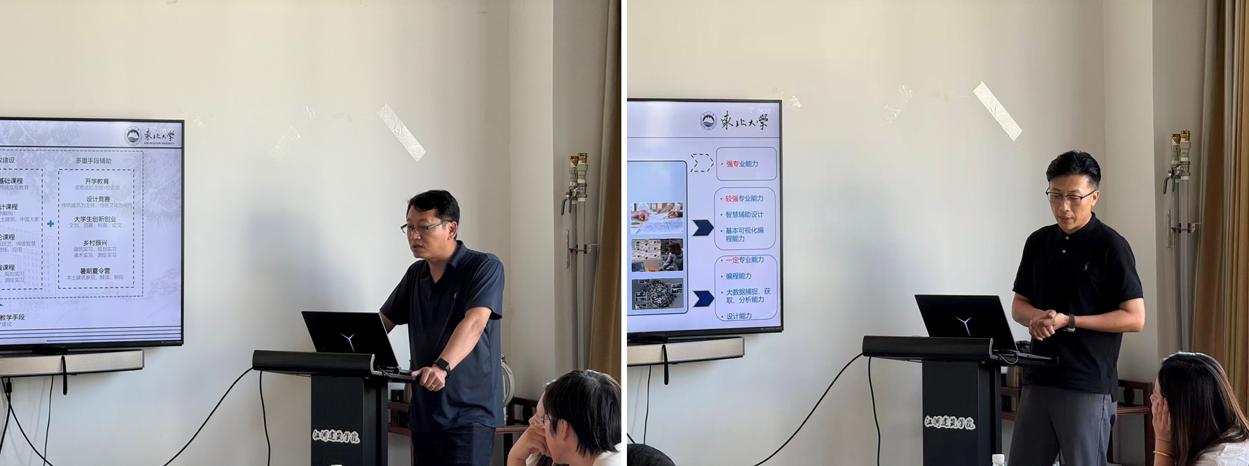 专业办学和培养方案介绍阶段,米兰网_米兰(中国)本科教学负责人席天宇针对我院建筑学专业办学特色进行介绍,席老师从国际化人才培养、实践教育基地与建筑师业务能力实训、产学研深度融合人才培养、跨地域-跨高校联合培养人才、课堂教学模式多样化建设和专业竞赛能力提升等“多元”模块进行详细介绍。米兰网_米兰(中国)建筑系主任刘哲铭对我院建筑学新版培养方案进行详细解读,刘主任分别从未来专业领军人才培养所需的学科交叉融合、前沿技术跟进、专业全球视野、技术驱动和社会责任等方面,围绕我院新版培养方案进行详细分享。会议讨论阶段,双方就辽宁工程技术大学建筑学专业的办学定位、是否五改四、新方向结合、现有专业调整可能性、培养方案和课程体系修订等方面进行热烈且详细讨论。